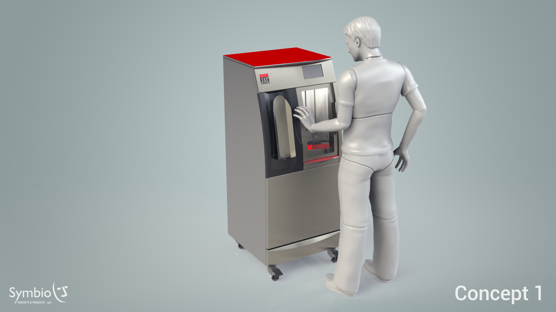 In accepting this assignment, Symbio was taking on five challenges. First there were the handling steps: this new machine requires the user to adopt new automatic procedures. Second, there was safety: opening the door must not endanger the baker or their fingers. Then there was the image: it had to be innovative, but fit in with the JAC range that all bakers are familiar with. Finally, the volume had to take into account the footprint of a bread slicer, and offer sufficient space for easy maintenance.